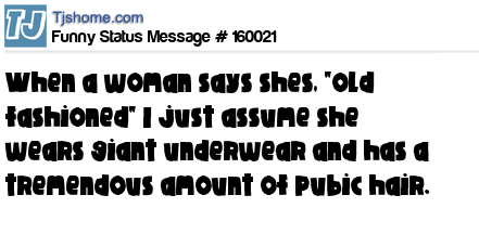 X says When a woman says shes, "old fashioned" I just assume she wears giant underwear and has a tremendous amount of pubic hair.