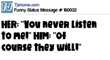 X says HER: ''You never listen to me!'' HIM: ''Of course they will!''