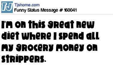X says I'm on this great new diet where I spend all my grocery money on strippers.