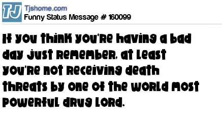 X says If you think you're having a bad day just remember, at least you're not receiving death threats by one of the world most powerful drug lord.