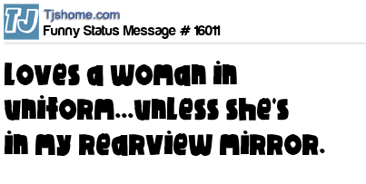 - # 27331 loves a man in uniform, unless he's in my rearview mirror.