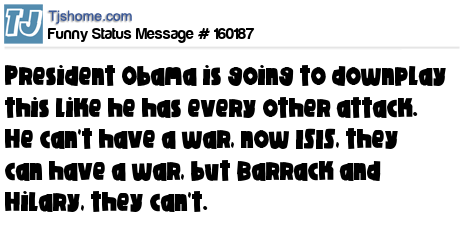 X says President Obama is going to downplay this like he has every other attack. He can't have a war, now ISIS, they can have a war, but Barrack and Hilary, they can't.