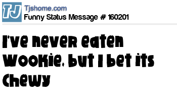- # 158117 I just had a bite of Wookie candy... It tasted pretty good but it was kinda Chewy. I soooo stole that joke from 1983.