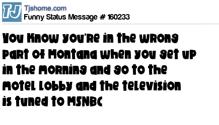 X says You know you're in the wrong part of Montana when you get up in the morning and go to the motel lobby and the television is tuned to MSNBC