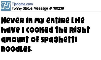 - # 191509 Just once in my life I'd love to make just the perfect amount of spaghetti for myself. Anyways, if you're hungry come on over. And bring like five friends.