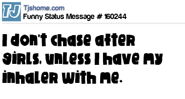 - # 153798 I don't chase after girls... unless I have my inhaler with me.