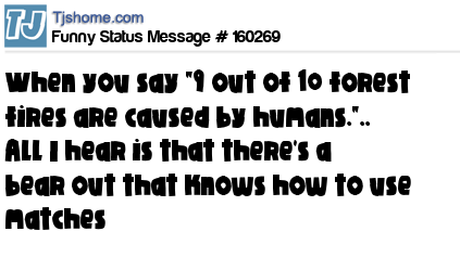 X When you say "9 out of 10 forest fires are caused by humans.".. All I hear is that there's a bear out that knows how to use matches