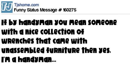 X says If by handyman you mean someone with a nice collection of wrenches that came with unassembled furniture then yes, I'm a handyman...