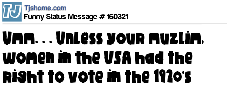 X says Umm. . . Unless your muzlim, women in the USA had the right to vote in the 1920's