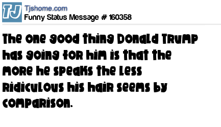 X says The one good thing Donald Trump has going for him is that the more he speaks the less ridiculous his hair seems by comparison.