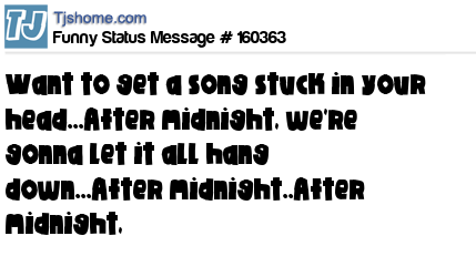 X says Want to get a song stuck in your head...After midnight, we're gonna let it all hang down...After midnight..After midnight,