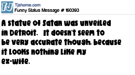 X A statue of Satan was unveiled in Detroit. It doesn't seem to be very accurate though, because it looks nothing like my ex-wife.