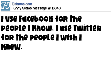 X says I use Facebook for the people I know. I use Twitter for the people I wish I knew.