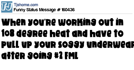 X When you're working out in 108 degree heat and have to pull up your soggy underwear after going #2 FML