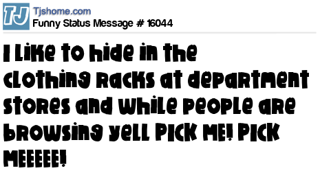 X I like to hide in the clothing racks at department stores and while people are browsing yell PICK ME! PICK MEEEEE!