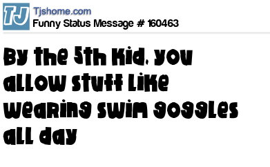 X By the 5th kid, you allow stuff like wearing swim goggles all day