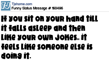 X If you sit on your hand till it falls asleep and then like your own jokes,, it feels like someone else is doing it.