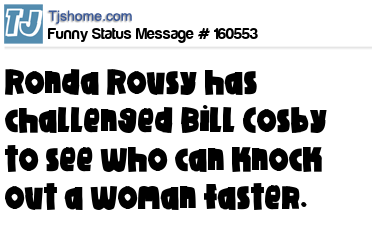 X says Ronda Rousy has challenged Bill Cosby to see who can knock out a woman faster.