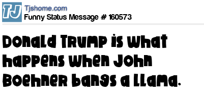 X says Donald Trump is what happens when John Boehner bangs a llama.