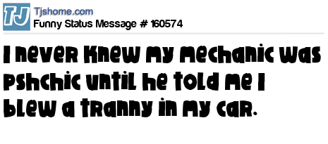 - # 183336 I never knew my mechanic was a psychic until he loudly announced that I had blown a tranny in my car