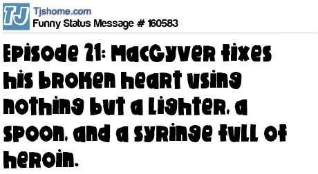 X says Episode 21: MacGyver fixes his broken heart using nothing but a lighter, a spoon, and a syringe full of heroin.