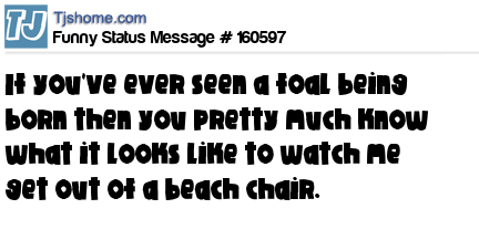X says If you've ever seen a foal being born then you pretty much know what it looks like to watch me get out of a beach chair.