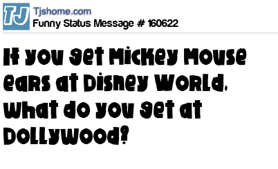 - # 3731 wondering, if you get Mickey Mouse ears at Disney World, what do you get at Dollywood?