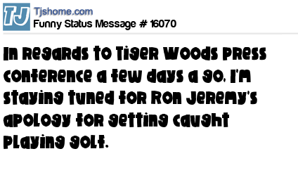 X In regards to Tiger Woods press conference a few days a go, I'm staying tuned for Ron Jeremy's apology for getting caught playing golf.