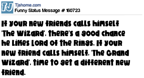 X says If your new friends calls himself 'The Wizard', there's a good chance he likes Lord of the Rings. If your new friend calls himself, 'The Grand Wizard', time to get a different new friend.