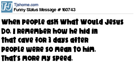 X says When people ask What Would Jesus Do, I remember how he hid in that cave for 3 days after people were so mean to him. That's more my speed.