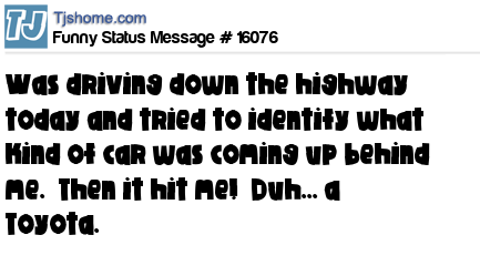 X was driving down the highway today and tried to identify what kind of car was coming up behind me. Then it hit me! Duh... a Toyota.