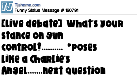 X [live debate] What's your stance on gun control?.......... *poses like a Charlie's Angel.......next question