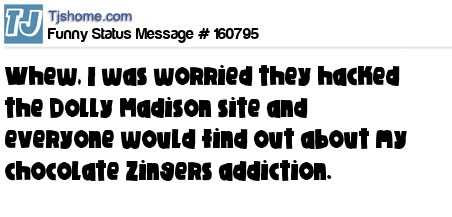 X says Whew, I was worried they hacked the Dolly Madison site and everyone would find out about my chocolate Zingers addiction.