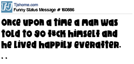- # 164464 Once upon a time a man was told to go f#ck himself and he lived happily ever after. . .