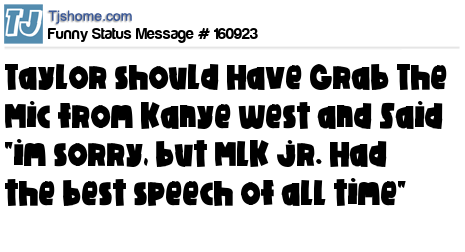 - # 180001 Taylor Swift should have grabbed that microphone from Kanye and said "Sorry, but Martin Luther King Jr. had the best speech of all time."