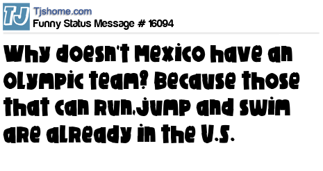 - # 92125 Why don't Mexico have an Olympic team this year? Because all those who can run, jump and swim are in America!!
