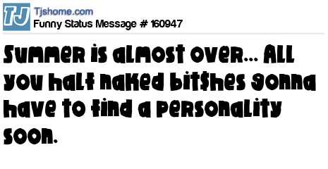 X says Summer is almost over... All you half naked bit$hes gonna have to find a personality soon.