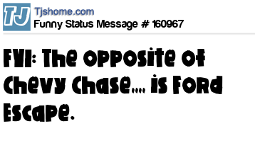 X FYI: The opposite of Chevy Chase,,,, is Ford Escape.