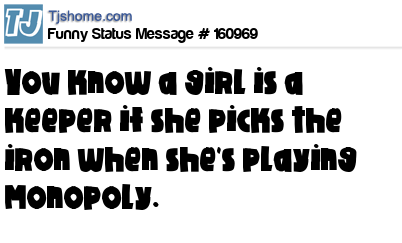 X says You know a girl is a keeper if she picks the iron when she's playing Monopoly.