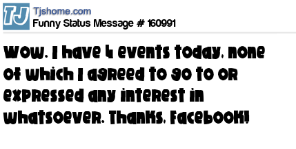 X says Wow. I have 4 events today, none of which I agreed to go to or expressed any interest in whatsoever. Thanks, Facebook!