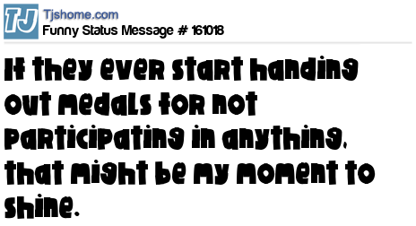 X says If they ever start handing out medals for not participating in anything, that might be my moment to shine.