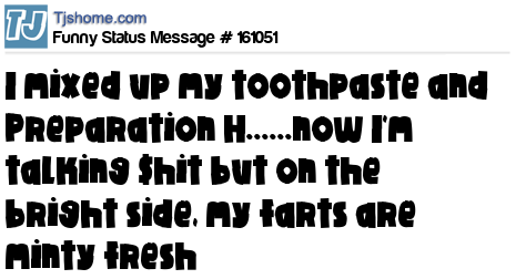 - # 27540 Life lesson....never put Preparation H next to the toothpaste in the morning.....YUCK!