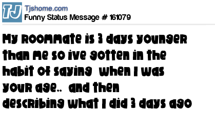 X My roommate is 3 days younger than me so ive gotten in the habit of saying “when I was your age..” and then describing what I did 3 days ago