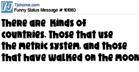 X says There are kinds of countries. Those that use the metric system, and those that have walked on the moon