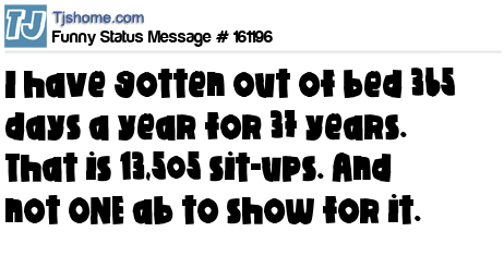 - # 155560 You know I got to thinkin about it and I have gotten outta bed 365 days a year for 26 years...... that is 9,490 sit-ups and not ONE ab to show for it....