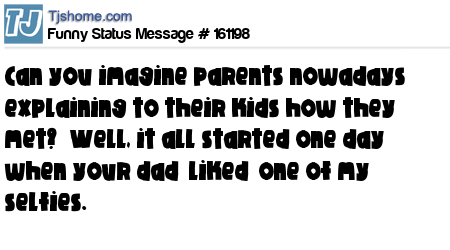 X says Can you imagine parents nowadays explaining to their kids how they met? “Well, it all started one day when your dad ‘liked’ one of my selfies.”
