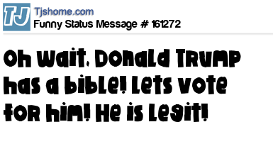 X says Oh wait, Donald Trump has a bible! Lets vote for him! He is legit!
