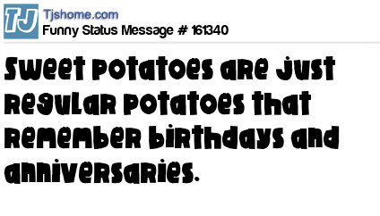 X Sweet potatoes are just regular potatoes that remember birthdays and anniversaries.