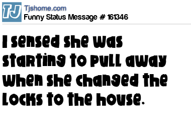 - # 134232 My wife said she expects the house to be clean by the time she walks in the door so I changed all of the locks.
