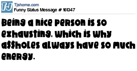 X says Being a nice person is so exhausting, which is why a$$holes always have so much energy.